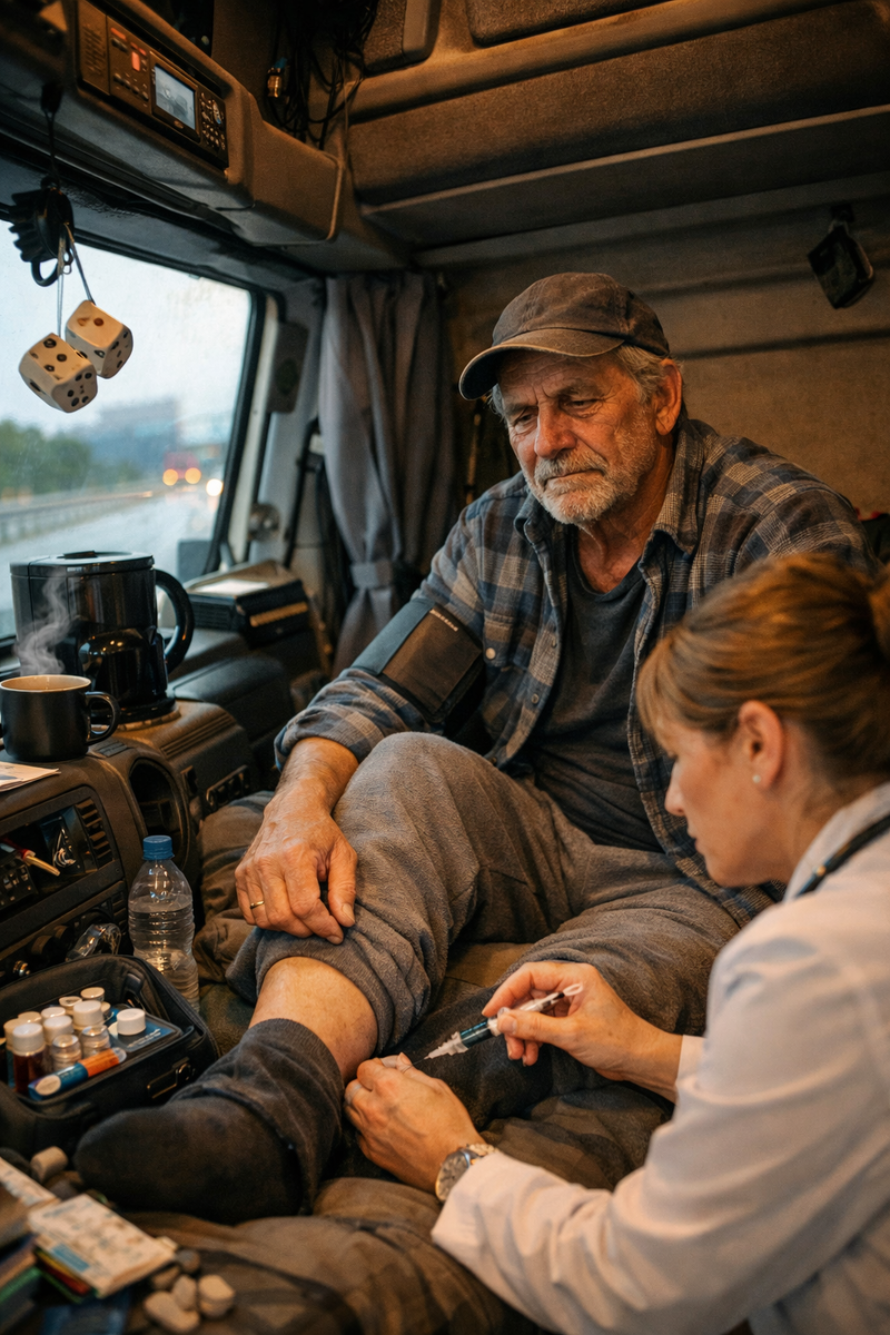 «Болит нога» – вот и весь повод. Диспетчер передал: трасса, 62-й километр, фура. Водитель не может выйти. Его кабина – это железная скорлупа, в которой он живёт, работает и сейчас заперт. Пахнет бензином, кофе и одиночеством. Мужик под шестьдесят, лицо – карта всех российских трасс, изрезанное морщинами усталости. В глазах – не паника, а глухое, привычное терпение. Терпел, пока мог. Теперь силы кончились.