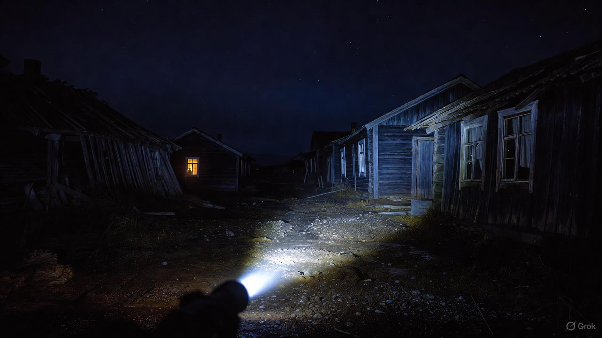 Собравшись с духом, я сделала несколько шагов по причалу к берегу. Под ногами хлюпала грязь, перемешанная с мелкой галькой. Мой луч фонаря пополз вперёд, выхватывая из темноты первые детали посёлка. Вернее, того, что от него осталось. Деревянные дома, некогда, должно быть, крепкие, стояли, понуро склонив крыши. Оконные проёмы зияли чернотой, в некоторых тускло светились жёлтые квадраты – значит, жизнь тут всё же теплилась. Дороги не было. Была утоптанная в грязи тропа, ведущая вглубь, между двумя рядами этих молчаливых, облупленных стражей.