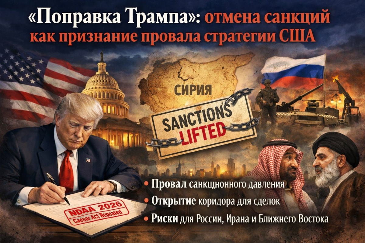 18 декабря 2025 года президент США Дональд Трамп подписал Закон о национальной обороне на 2026 финансовый год (NDAA-2026). В одном из его разделов была закреплена норма, уже получившая неофициальное название «поправка Трампа» — прямая отмена так называемого Caesar Syria Civilian Protection Act. С этого момента один из самых жёстких санкционных режимов США против Сирии прекратил своё существование юридически и безоговорочно.