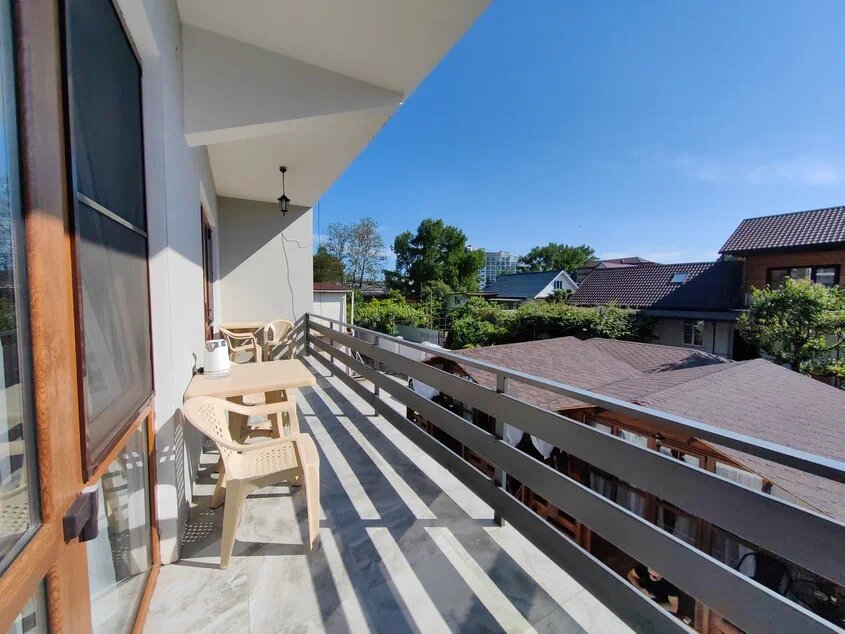 Отель Гест Хауз Кира 📍Гагра, ул. Саят-Нова, 29 🏖️ 6 минут до пляжа 👥 Размещение до 4 человек ✔️ТЕРРИТОРИЯ: Красивый заповедный уголок, цветущий двор, белоснежное аккуратное здание, вид на горы с балконов - это всё про отель Kira. "Все настолько супер, что даже слов нет. Гостеприимные хозяева, близко к пляжу, красивейший двор с пальмами и плодовыми деревьями. Есть все что нужно для комфортного отдыха. И цены очень приятно удивляют. Мы вернемся еще. Вы лучшие в Гагре!" Такой отзыв говорит о многом 🤗 На территории есть каркасный бассейн 3*3 м, качели, гамачок, столы и стулья для отдыха и даже диваны! Полностью оборудованная кухня, стиральная машинка. ✔️НОМЕРА: Отель на 4 этажа, на каждом всего по 2 номера. Размещение трехместное: двуспальная кровать и мини-диван раскладной / либо односпальная кровать. Возможно добавить четвертое место (раскладная кровать без доплаты). Прикроватные светильники, тумбочки, платяной шкаф, чайник, спутниковое тв, wifi. Саунзел с душевой. На балконе стол и
