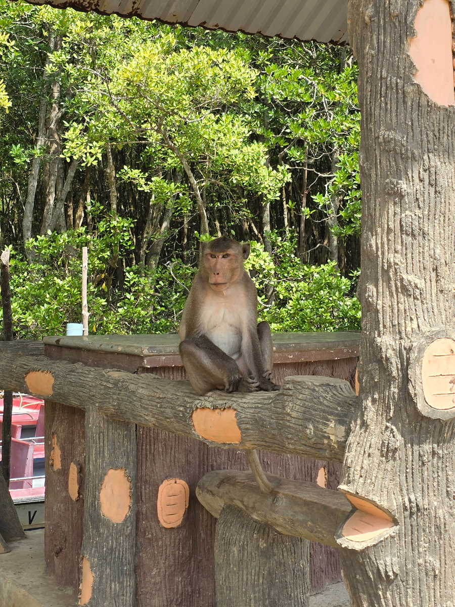 Здесь мангры переплетаются корнями, как щупальца. Птицы кричат так, будто это мы вторглись в их территорию. Термиты строят на деревьях настоящие «многоэтажки» А по илу скачут илистые прыгуны — рыбы с «локтями», которые могут жить без воды. В Can Gio есть Monkey Island — остров с сотнями длиннохвостых обезьян. Они смешные и милые. Ровно до той секунды, пока ты не отвлёкся. С меня молниеносно стащили кепку.