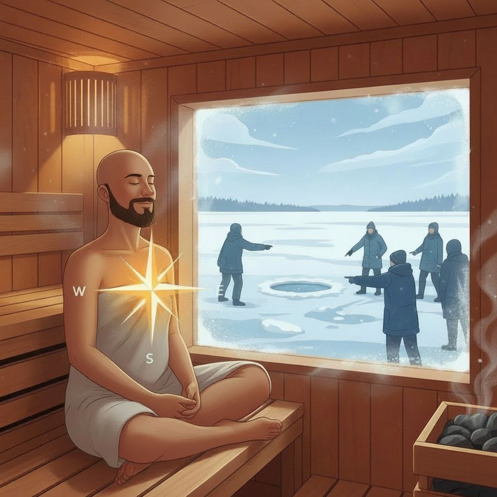 Почему «надо» — это ловушка, а ваше «не хочу» — это сила? Привет! Сегодня поговорим о самооценке не как о красивом слове, а как о «приборе» внутри нашей головы опираясь на нейробиологию и социальную психологию. Самооценка — это ваш внутренний датчик. Представьте, что внутри вас есть прибор, как датчик бензина в машине. Психологи называют его «социометр». Он следит: принимают ли нас другие люди? Если нас хвалят, датчик ползёт вверх, и мозг выбрасывает дофамин — гормон радости и азарта. Но этот датчик очень капризный: стоит кому-то нас покритиковать, как уровень «бензина» падает, серотонин (гормон спокойствия) исчезает, и нам становится по-настоящему больно, почти как если бы мы ударились. Ловушка «настоящего мужчины» в бане. Давайте разберем пример из жизни. Вы сидите в бане на берегу Волги. Друзья говорят: «Пошли в прорубь! Побывать здесь и не окунуться — это упущение. Настоящий мужчина должен преодолевать страх холодной воды!». В этот момент ваш мозг попадает в ловушку: Чужое «надо