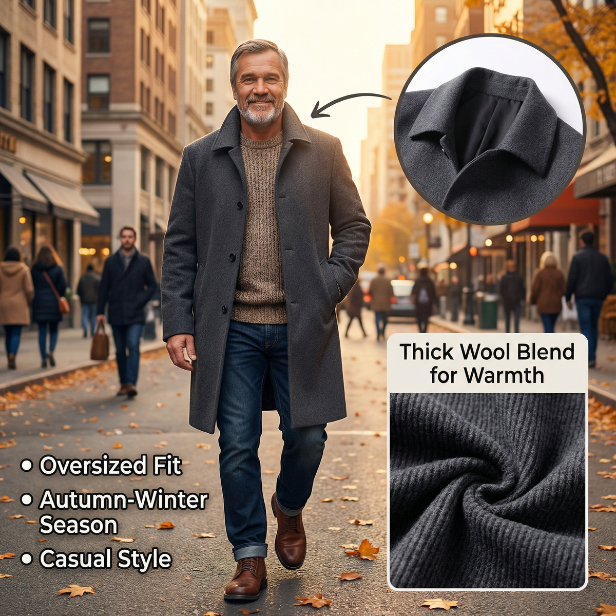 В холодные осенние вечера и морозные зимние дни каждый мужчина хочет выглядеть стильно, не жертвуя комфортом. Представьте: вы идёте по заснеженным улицам города, чувствуя себя уверенно и тепло, в пальто, которое не только греет, но и подчёркивает вашу индивидуальность. Сегодня мы поговорим о модном очень большом осенне-зимнем мужском длинном повседневном шерстяном пальто оверсайз — настоящем хите сезона. Это не просто одежда, а инвестиция в ваш гардероб, которая сочетает casual-стиль с премиум-качеством. Если вы ищете "мужское шерстяное пальто оверсайз" или "длинное осенне-зимнее пальто для мужчин", то эта статья для вас. Давайте разберёмся, почему оно заслуживает места в вашем шкафу! Мода 2026 года диктует: комфорт превыше всего! Оверсайз-стиль, пришедший из уличной культуры, теперь доминирует в повседневных образах. Это мужское шерстяное пальто оверсайз сделано из смеси полиэстера и шерсти, что обеспечивает отличную теплоизоляцию. Ткань в рубчик с саржевым плетением — плотная и толст