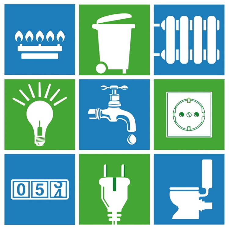 - Водоснабжение и водоотведение — холодная и горячая вода, с фиксацией объёмов;