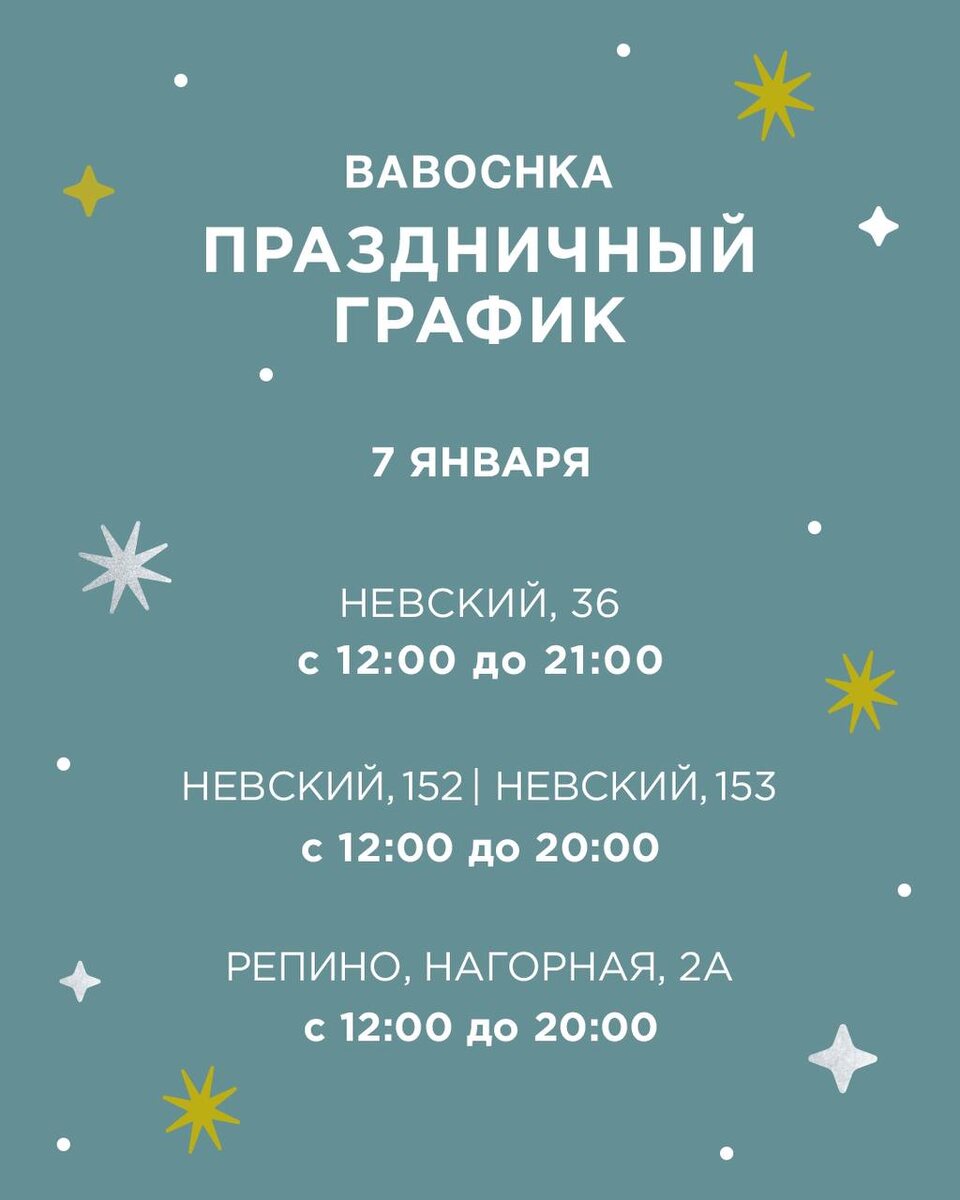 Праздничный график бутиков BABOCHKA 7 декабря