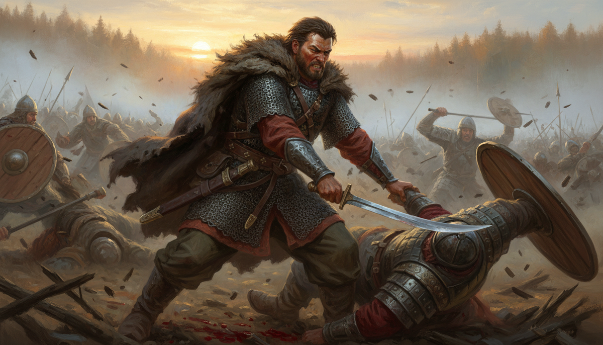 Евпатий стоял посреди того, что еще вчера было его домом. И что-то сломалось внутри. Не просто горе — превращение. Из воеводы он стал местью в человеческом обличье.