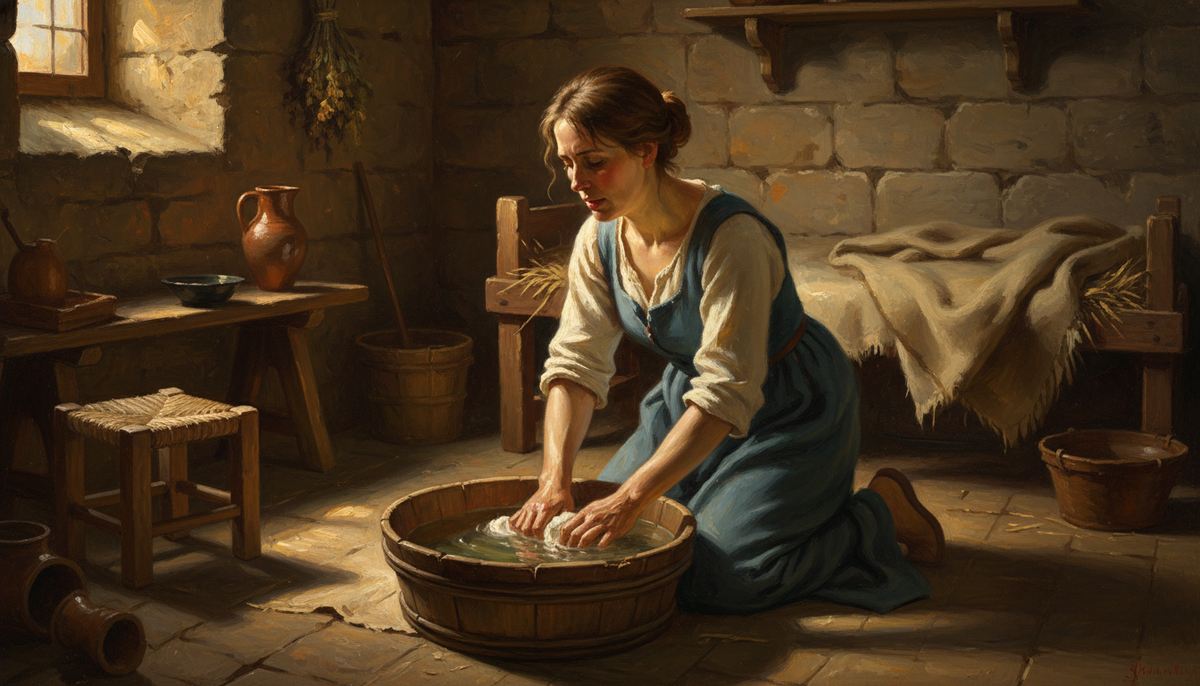 Мыло существовало, но было роскошью. Его варили из древесной золы, смешанной с животным жиром или маслом. Для аромата добавляли сушёную лаванду или розмарин. Щёлочь в составе была настолько едкой, что разъедала кожу при энергичном трении.