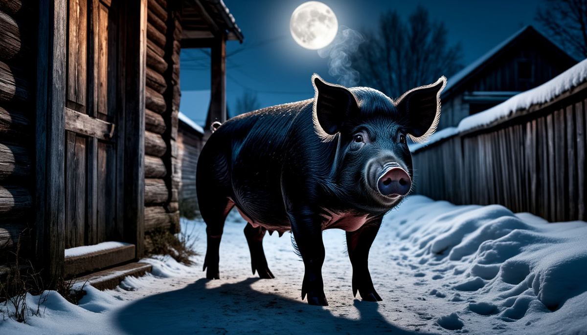 На месте сухой старухи стояла огромная, черная свинья.
