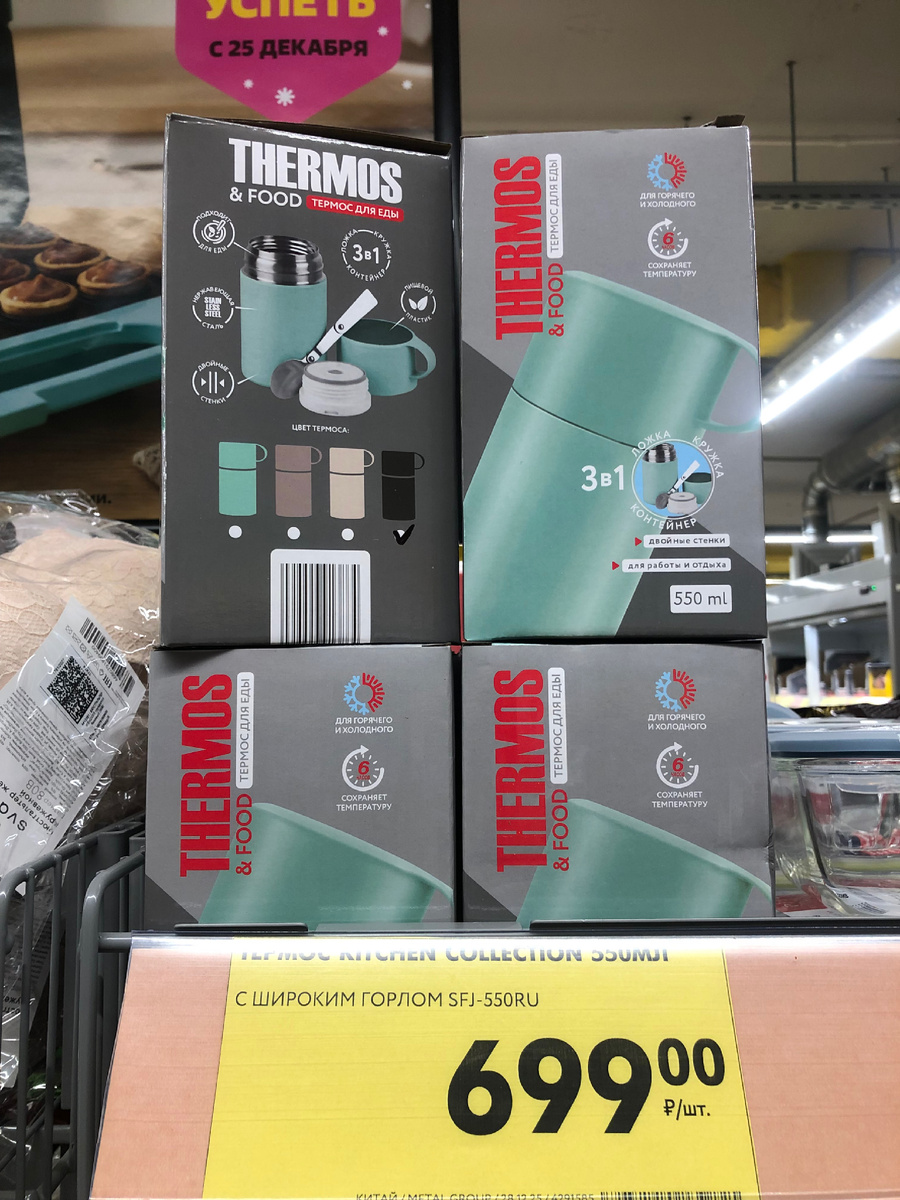 Снова в продаже термосы доя еды 3в1. Они с широким горлом. В комплекте крышка, которую можно использовать как кружку и складная ложка. Очень удобная вещь, если вы рыбак или часто путешествуете. Мы такой термос дарили деду в прошлом году на 23 февраля. Он у нас заядлый рыбак. Пользовался и остался доволен. Обед всегда при нем, теплая еда на рыбалке, особенно зимой - радует.