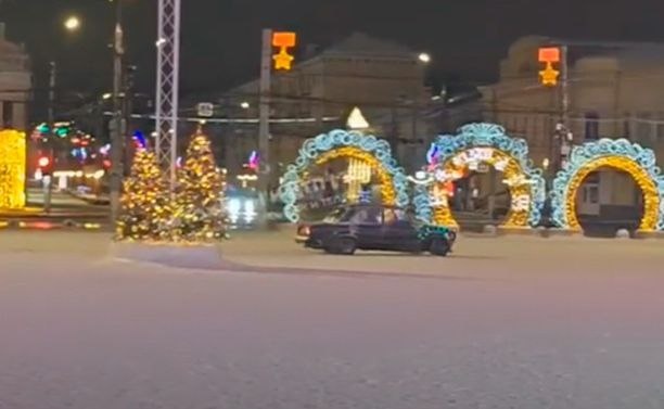 В ночь на 7 января около 4:14 утра на площади Ленина водитель ВАЗ-2107 устроил дрифт под куполом главной новогодней ёлки региона.