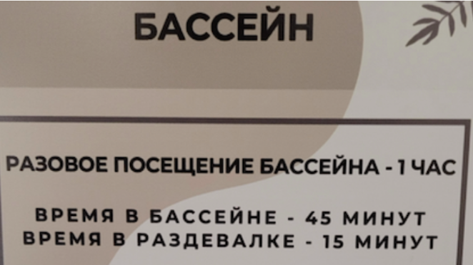 «Время в бассейне – 45 минут».