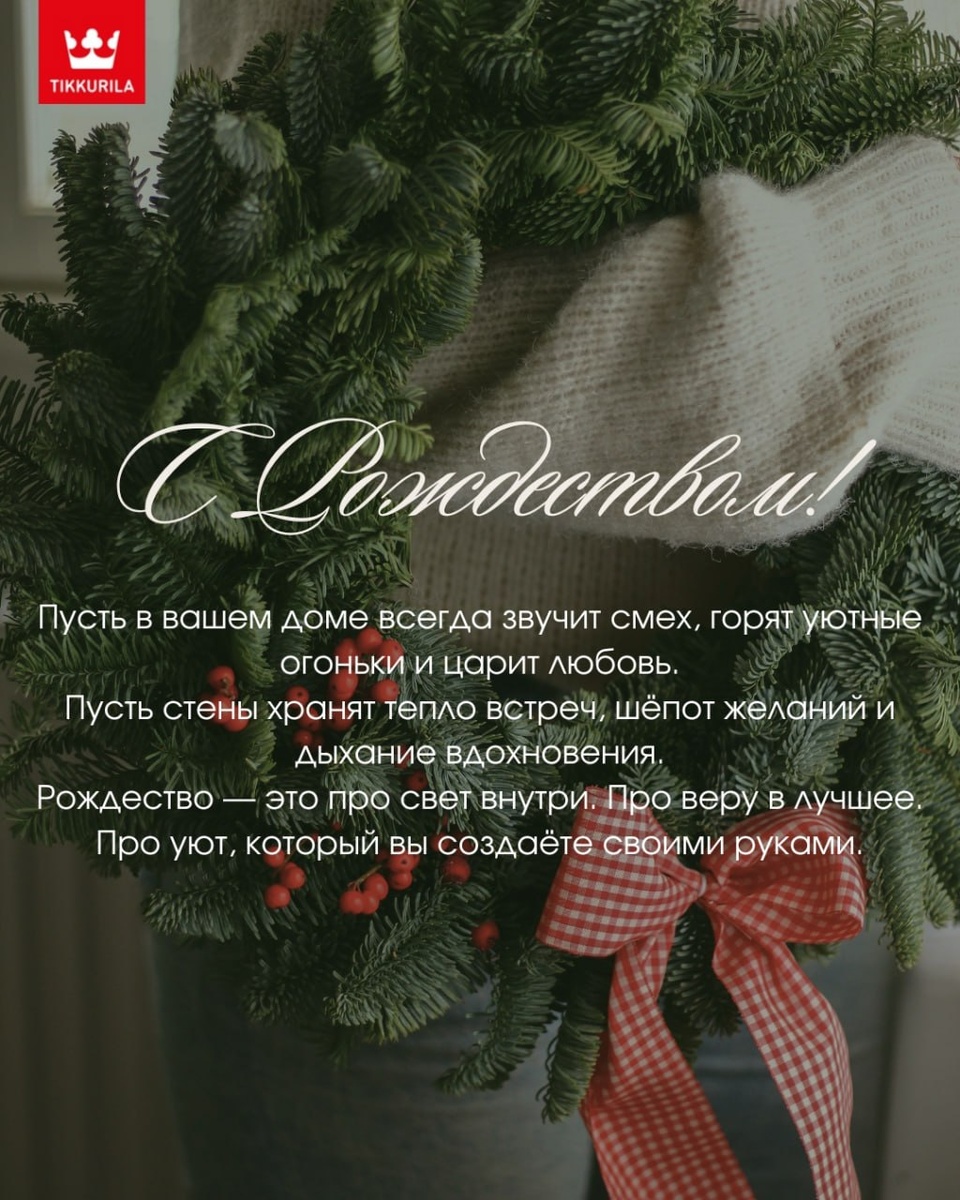 ! 🏠🏠 Пусть в вашем доме всегда звучит смех, горят уютные огоньки и царит любовь. Пусть стены хранят тепло встреч, шёпот желаний и дыхание вдохновения. 👼Рождество — это про свет внутри. Про веру в лучшее. Про уют, который вы создаёте своими руками. Мы в Студиях Цвета Tikkurila от всего сердца желаем вам праздника — в каждом дне, в каждой комнате, в каждой идее, которую хочется воплотить. Спасибо, что вы с нами. Пусть впереди будет ещё больше красоты, вдохновения и счастливых переделок 🏠 С Рождеством! Ваша команда Студий Цвета Tikkurila