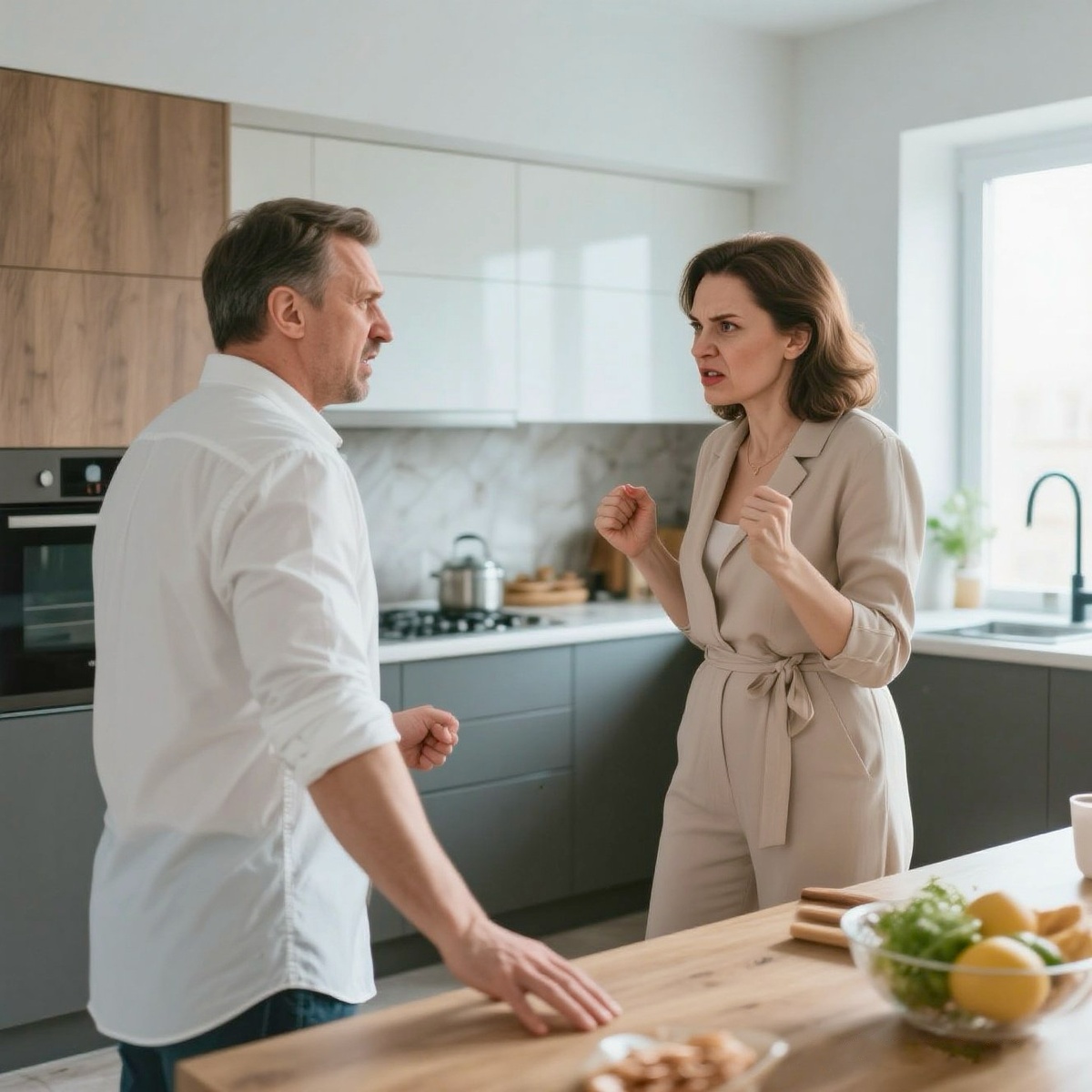 Она кинулась на мужа с кулаками, но не била по-настоящему, скорее толкала его в грудь, выплёскивая бессильную ярость и отчаяние. Андрей перехватил её руки.