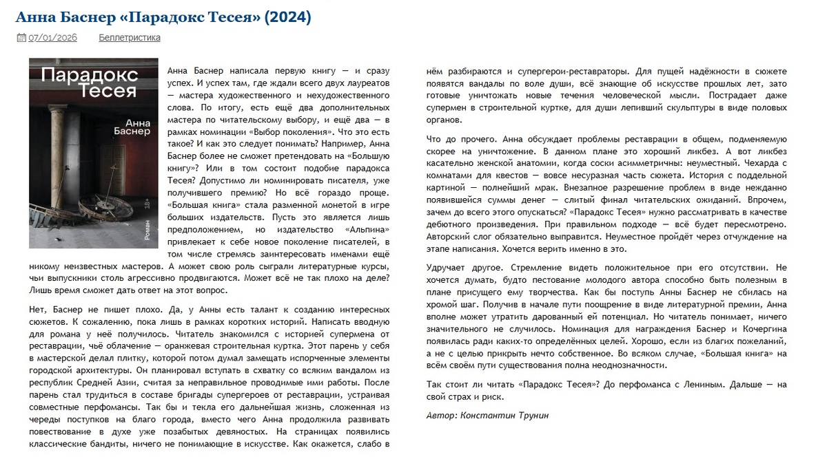 Анна Баснер "Парадокс Тесея" (2024) | Критика