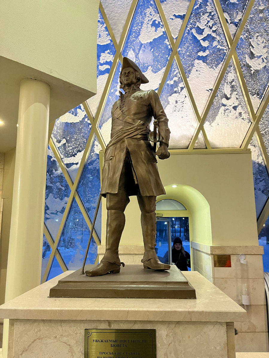 Внутри установлены два питьевых фонтанчика и скульптура Петра I, как дань легенде об открытии им целебных вод. Для комфорта в холодное время года пол оборудован подогревом.