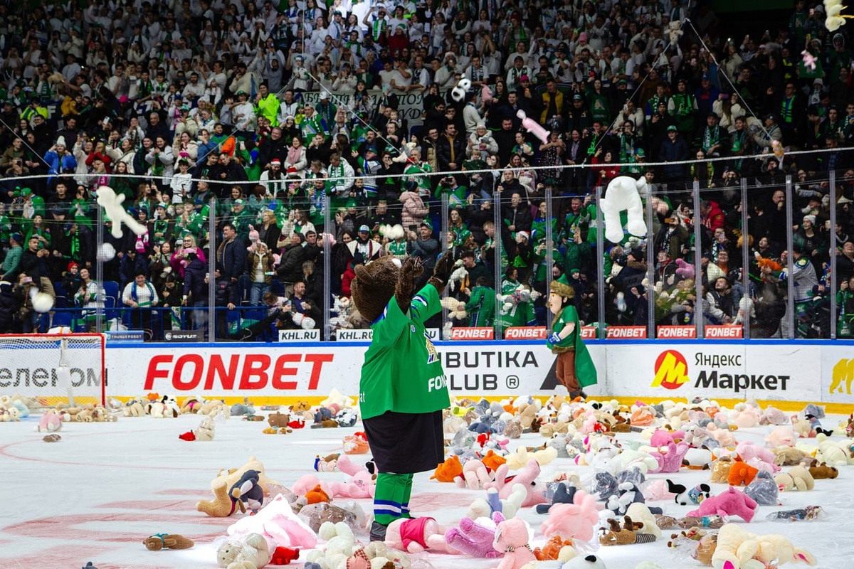 Последний матч «Салавата Юлаева» в 2025 году прошел под знаком «Мишкопада» — акции, средства с которой идут в благотворительный фонд помощи