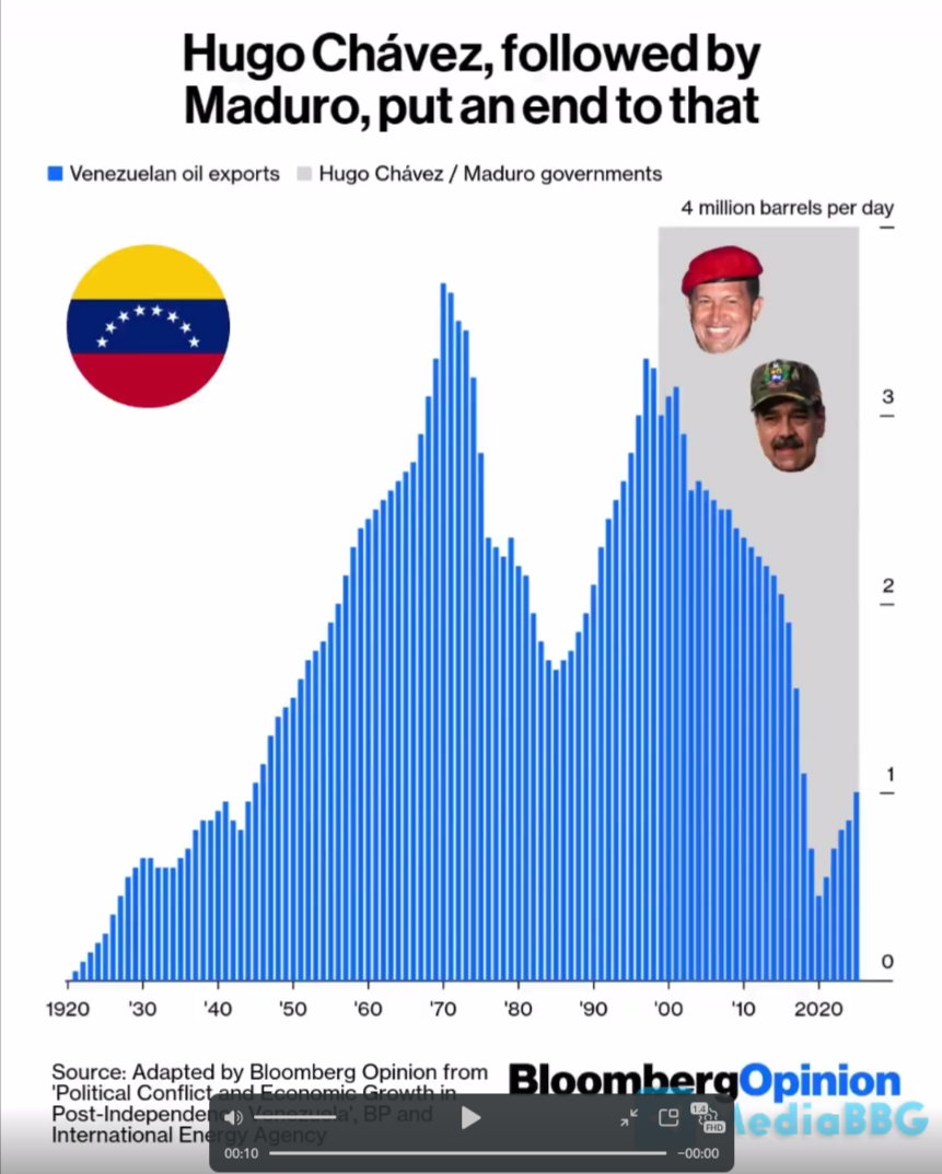 Любителям космического масштаба графиков, которые "доказывают", что "социалисты уничтожили нефтедобычу в Венесуэле", предлагаю следовать своей изумительной логике до конца и присовокупить динамику роста запасов. Иначе может сложиться впечатление, что вы предвзяты и просто хотите что-нибудь нехорошее сказать про Чавеса и Мадуро. А вы ведь искренне стараетесь разобраться в ситуации, да? Если что, я соответствующий график сделал. За помощь можно не благодарить. Это я должен быть вам благодарен, что вы всё объяснили: нефтедобыча в Венесуэле начала падать из-за внедрения "российской" системы отношений с иностранными компаниями, а не из-за естественного ухудшения качества запасов, высокой себестоимости, падения цен на нефть и санкций со стороны США. Кстати, может мне кто-то из уважаемых критиков руководства Венесуэлы объяснит, какие "социалисты" обвалили добычу в США с 8,7 млн бар. в сутки в 1983-м до примерно 5 млн бар. в сутки в 2008-м (а тут падение примерно равно максимумам венесуэльск