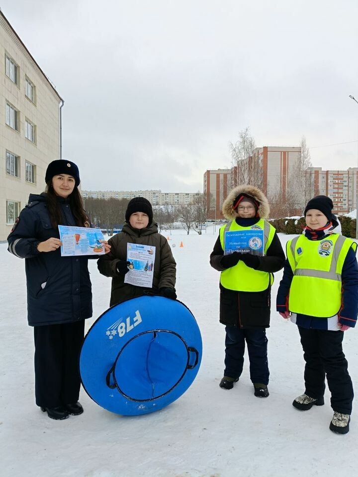 Сотрудники ГИБДД вместе с учащимися школы № 22 в игровой форме закрепляли знания правил дорожного движения и дорожных знаков. Участники прошли несколько тематических станций: узнавали и отгадывали дорожные знаки, соревновались в скорости, ловкости, умении работать в команде, демонстрировали правила безопасного катания на тюбингах и т. д. Инспектор по пропаганде БДД отделения Госавтоинспекции Алина Наширванова напомнила ребятам о необходимости быть осторожными на отдыхе и не рисковать жизнью. — Взрослым необходимо проследить, чтобы катание на санках, тюбингах и ледянках проходили в предназначенных для этого местах, без риска выезда на проезжую часть. Каждому родителю важно показывать ребёнку верный алгоритм действий при участии в дорожном движении, постоянно напоминать правила дорожного движения и контролировать их усвоение и соблюдение. Это поможет сделать безопасными не только новогодние каникулы, но и все другие дни в году, — подчеркнула инспектор. Фото предоставлено Алиной Наширвано