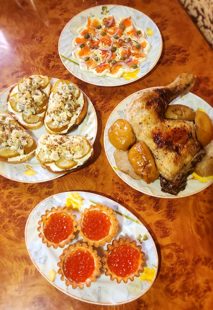 А таким был наш стол на Рождество, повторение новогоднего в миниатюре и на кухне.
