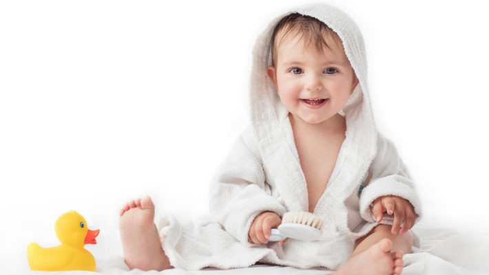 - Кладем ребенка на любую твердую ровную поверхность, например, стол;