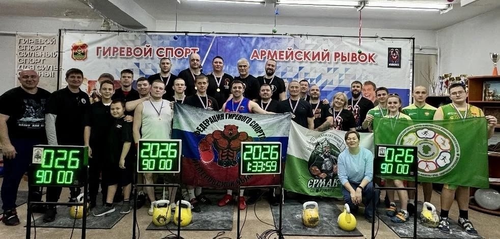 Команда гиревиков округа приняла участие в новогоднем марафоне. Его организовал клуб «Ракета» в Кемерово 6 января. 5 команд по 4 спортсмена в каждой в формате эстафеты набирали 2026 подъемов упражнением «рывок». Нашей команде в составе Дарьи Меденцевой, Германа Фриса, Арсения Чупина и Владислава Кирносова удалось выполнить задание примерно за 75 минут.