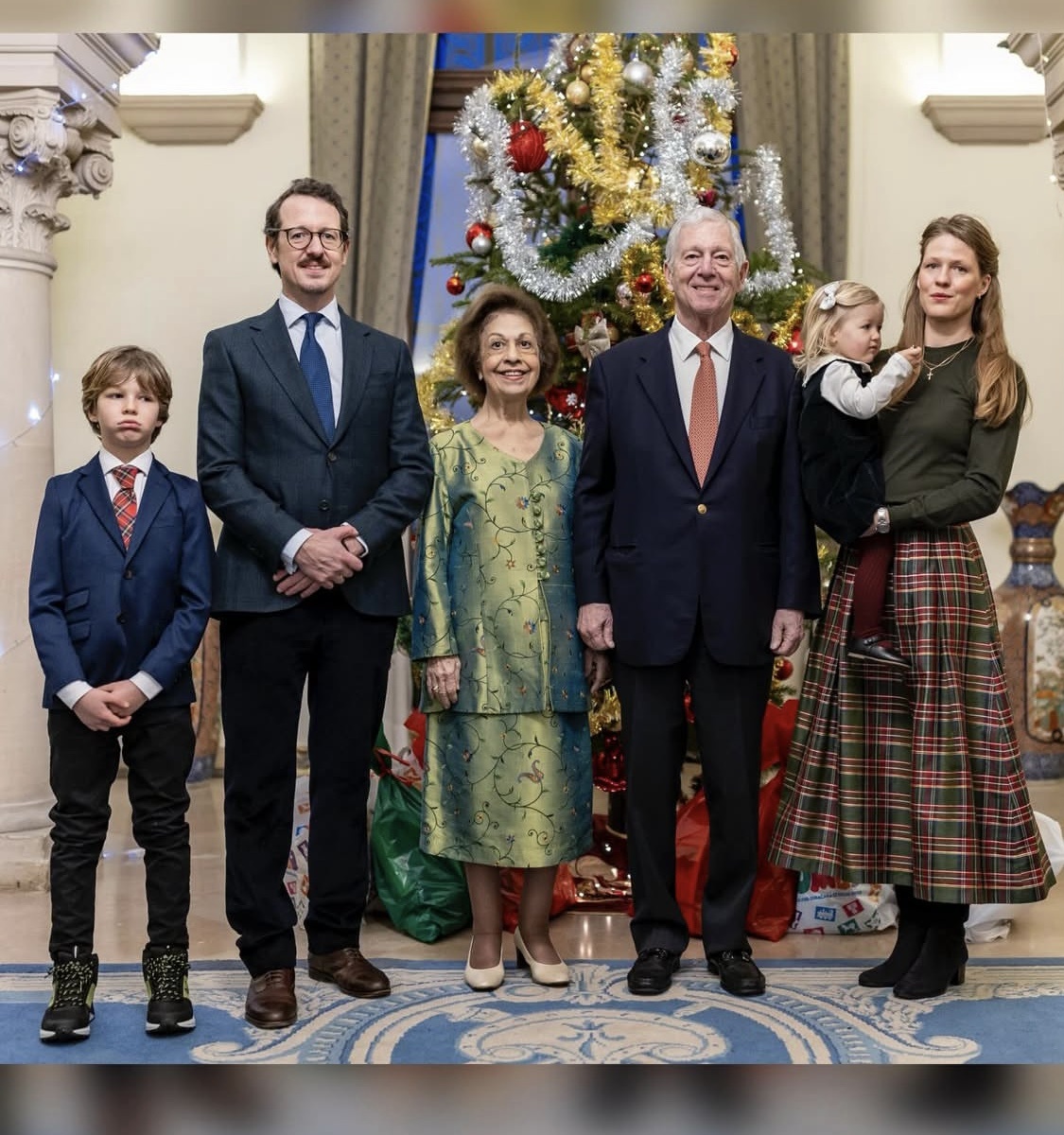 Наследный князь Александр и наследная княгиня Екатерина вместе со своим сыном принцем Филиппом, его женой княгиней Даницей и детьми князем Стефаном и княжной Марией присутствовали на церемонии срезания и сжигания сухих дубовых веток, символа рождественского полена.