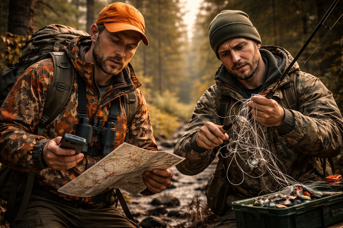 Ошибки начинающих охотников и рыбаков почти никогда не выглядят как глупость. Чаще всего это уверенность, помноженная на поверхностные знания. Человек много читал, смотрел видео, слушал рассказы и искренне считает, что он готов. И именно в этот момент он начинает допускать ошибки, которые потом годами вспоминаются с неприятным чувством внутри. Самая распространённая ошибка — спешка. Желание сразу получить результат. Поймать, добыть, доказать себе и другим, что всё не зря. Из-за этого начинающий идёт дальше, чем нужно, остаётся дольше, чем безопасно, делает лишние движения, шумит, торопится с решением. Лес и река не любят спешки. Они всегда выигрывают у тех, кто пытается ускорить процесс. Вторая ошибка — переоценка снаряжения. Новичок часто думает, что хорошая экипировка компенсирует отсутствие опыта. Современные снасти, одежда, техника создают иллюзию защищённости. Но в реальности они лишь инструменты. Они не подсказывают, когда пора уходить, не чувствуют погоду и не заменяют голову.