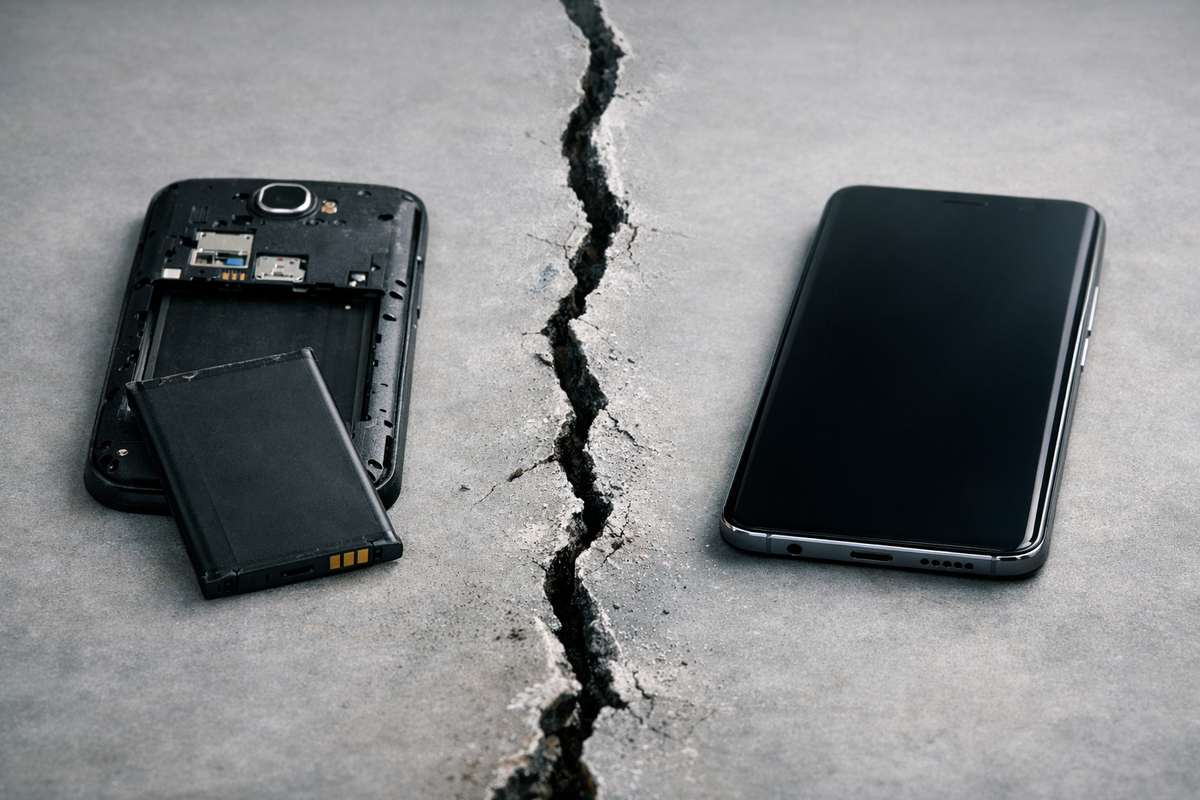 Помните те времена, когда разрядившийся телефон не превращался в кирпич? Когда можно было просто щёлкнуть защёлкой на задней крышке, вытащить севший аккумулятор и вставить заряженный запасной? Когда через два года использования вы не бежали в сервисный центр с толстым кошельком, а просто покупали новую батарею за копейки?
