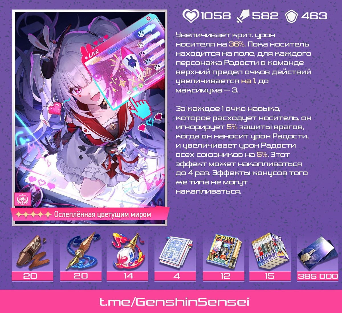 В 4.0 выпустят 6 новых конусов Радости, включая 2 сигны и 1, который добавят в БП (Сегодня везёт). Hakushin поделились описаниями будущих конусов. Мы же перевели и адаптировали для вас в удобные карточки Напоминаем, что к финальной версии игры всё может поменяться, как и перевод оказаться неточным #хср_слив #хср4_0 / Подпишись на Сенсея