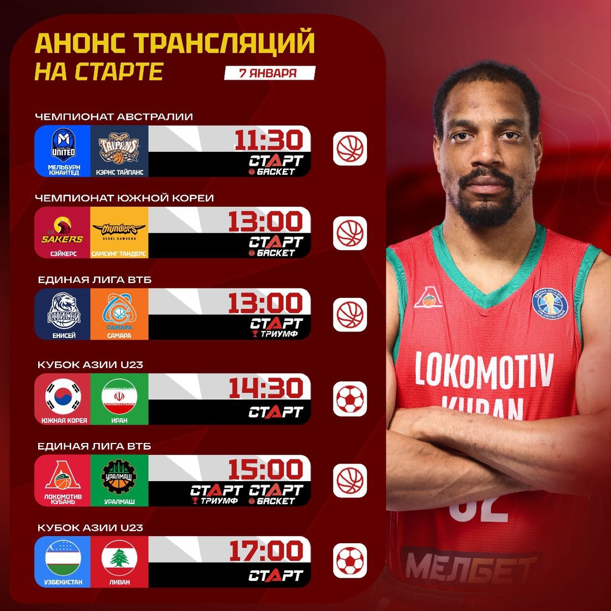 ! Начинаем день по традиции с Австралии и Южной Кореи. Далее в программе две игры Единой Лиги ВТБ, старт Узбекистана на молодежном Кубке Азии и волейбольные Лиги Чемпионов. В женской особое внимание матчу «Зерена» Светланы Гатиной и Анны Лазаревой против «Дрезднера», а в мужской увидим стамбульское дерби – «Халкбанк» против «Галатасарая». Проведите рождественский день на платформе TVSTART.RU 🖥 🛒 Наше приложение в Google Play 💙 Наше приложение в RuStore 🛒 Наше приложение в App Store