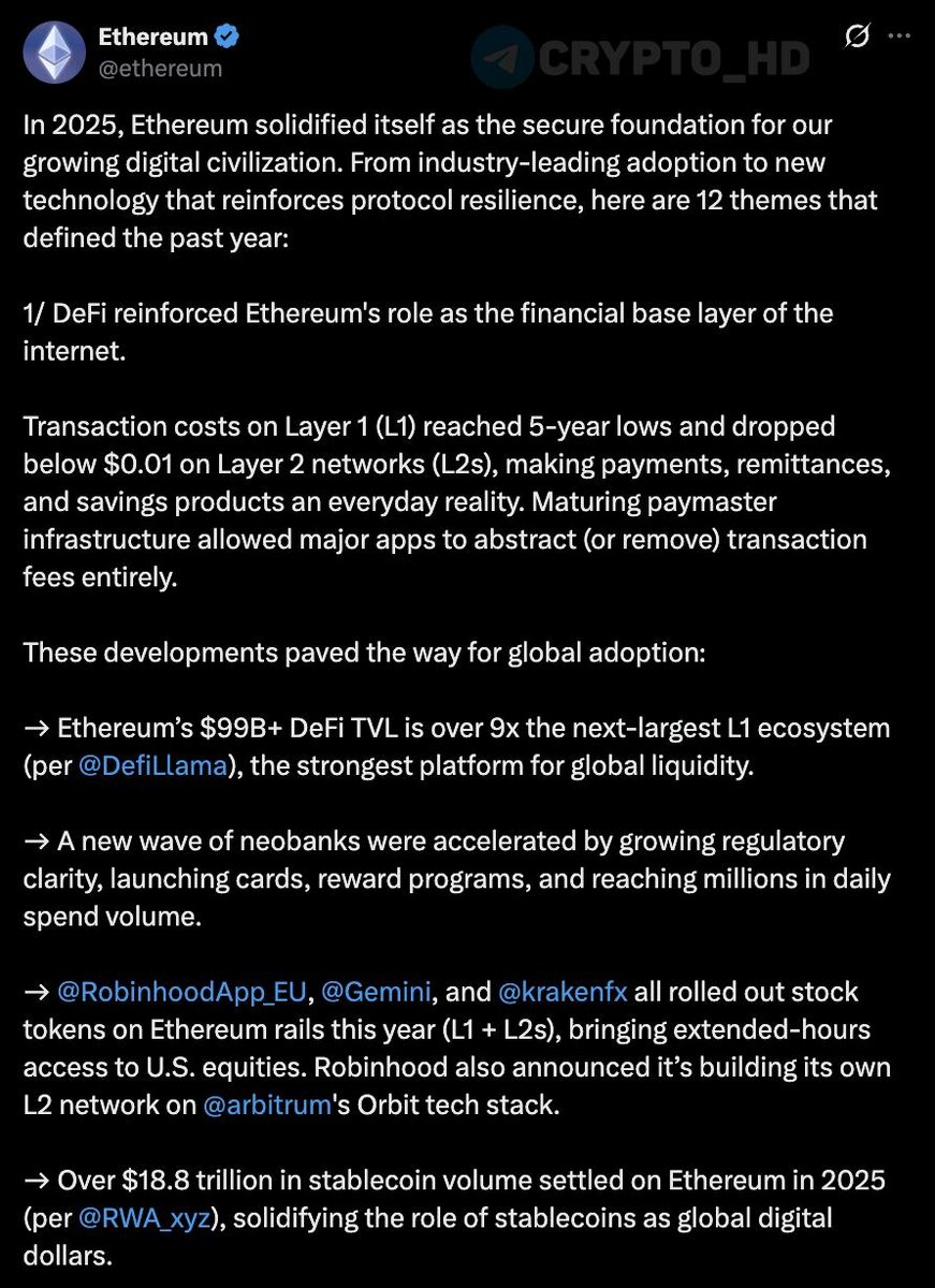2️⃣ #ETH В Ethereum подвели итоги 2025 года (twitter