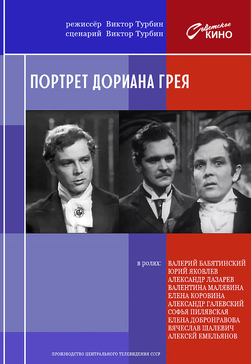 6 января 1969 года на Советском телевидении состоялся премьерный показ телевизионного художественного фильма «Портрет Дориана Грея» «Портрет Дориана Грея» фильм-спектакль по мотивам одноимённого романа Оскара Уайльда. Телевизионная версия поставлена режиссёрами Надеждой Марусаловой и Виктором Турбиным в 1968 году. Юный Дориан Грей у написанного своего портрета произносит желание никогда не стариться, а оставаться таким, как на портрете. Необъяснимым образом вместо юноши взрослеть и стариться начинает портрет, а он остаётся молодым и красивым, как в день написания портрета. Дориан влюбляется в актрису, с которой планирует обручиться, однако после неудачно сыгранного ею спектакля разрывает отношения, после чего девушка убивает себя. С этого момента начинают происходить изменения в портрете. Далее Дориан позволяет себе всё больше. О нём по Лондону расходятся самые невероятные слухи, а автор портрета Бэзил, попытавшийся вразумить Дориана, также оказывается мёртвым от руки некогда любимой