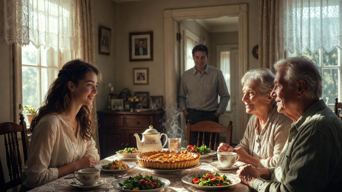 Потом был обед — простой, домашний, но приготовленный с такой любовью, что каждая котлета и ложка гречки казались шедеврами. Разговор за столом тек о чём угодно: о новых книгах (оказалось, Геннадий Иванович запоем читает исторические романы), о садовых планах на весну, о том, как меняется город. Арину вовлекали естественно, как будто она всегда здесь сидела по воскресеньям. Ей предлагали добавки, спрашивали мнение, делились воспоминаниями. И не было в этом ни капли фальши или напряжённости.