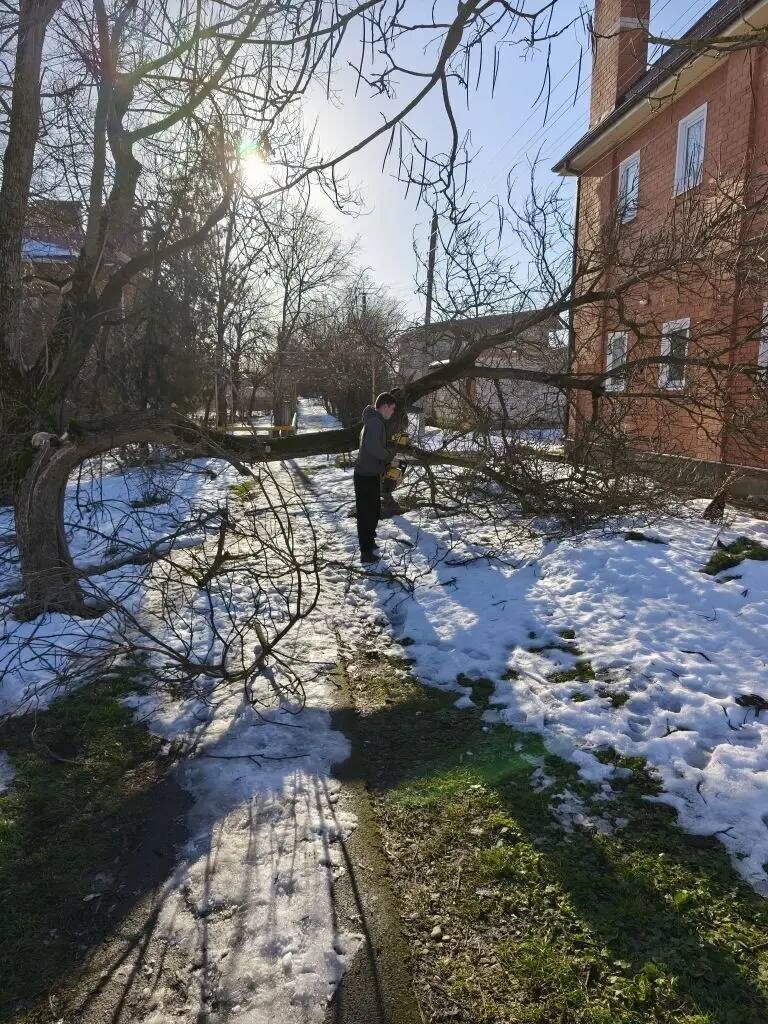 Производится опилка деревьев и сломанных веток.