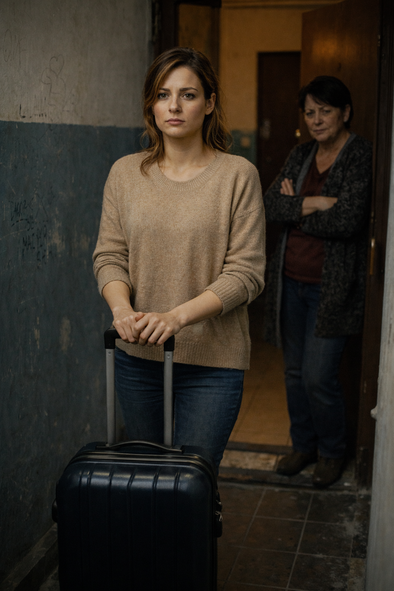 Она стояла в дверях, скрестив руки на груди, и смотрела на меня сверху вниз, как на человека, который наконец-то получил по заслугам. Я стояла на лестничной площадке с чемоданом. Старым, потёртым, с треснувшей ручкой. В нём была вся моя жизнь, аккуратно уложенная впопыхах: несколько свитеров, документы, зарядка для телефона и фотография, которую я так и не решилась выбросить. Дверь за моей спиной уже была закрыта.