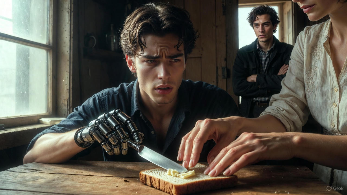 На следующее утро они начали с малого. Завтрак. Алиса показала Марку, как намазывать масло на хлеб. Он наблюдал за каждым её движением с интенсивностью учёного, изучающего редкое явление. Потом повторил. Его движения были медленными, чересчур точными, но в этот раз хлеб не улетел в стену. Он удержал его. Маленькая победа.