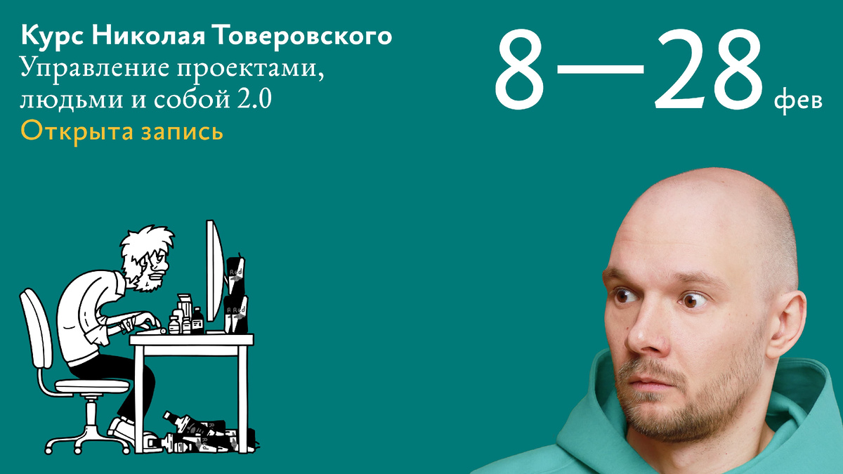 Открыта запись на курс Николая Товеровского «Управление проектами, людьми и собой 2.0» с 8 по 28 фев — сэкономьте 30% при записи до 9 января