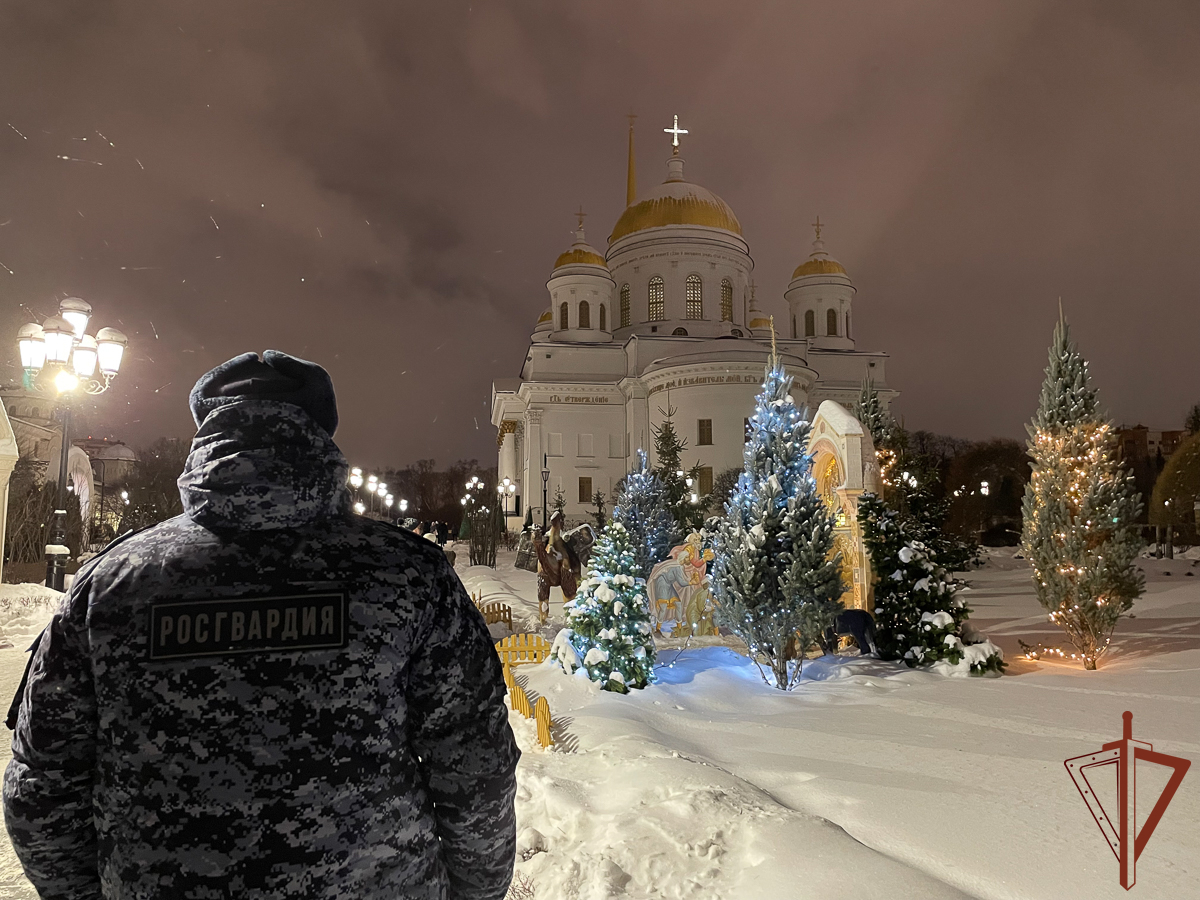 Военнослужащие и сотрудники Уральского ордена Жукова округа войск национальной гвардии Российской Федерации во взаимодействии с коллегами из МВД и представителями частных охранных организаций обеспечили общественную безопасность Рождества Христова в ночь с 6 на 7 января.