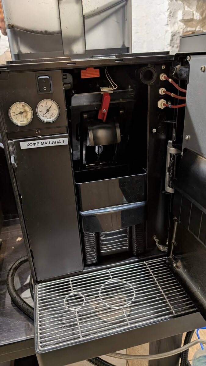 Это базовая гигиена. Система мониторинга заполнения отслеживает уровень в поддоне для сбора капель и контейнере для пью-стайна (отработанного кофейного жмыха). При срабатывании датчика (или по визуальному индикатору — поплавку) алгоритм выводит на HMI-дисплей (панель управления) соответствующий запрос.