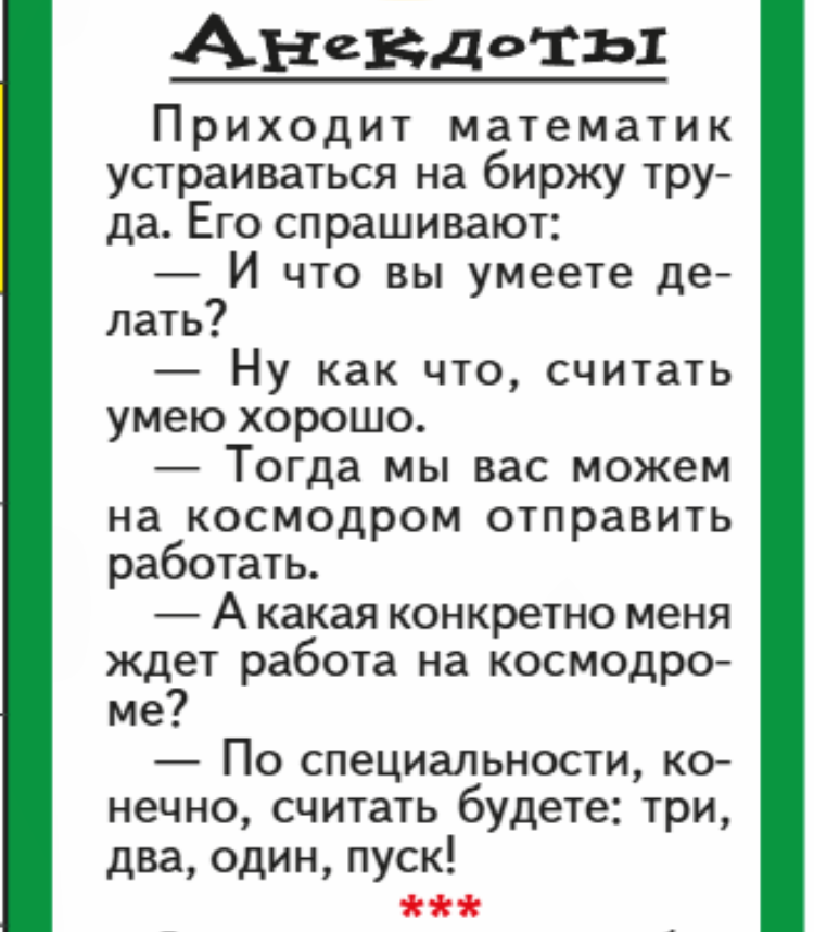 Ой, чего то меня не туда понесло. Хорошо что есть анекдоты, они хоть как-то выжить помогают. А вам? Помогают? Ну, они, анекдоты? Да, ладно, не заморачивайтесь. Отдыхайте, отдыхайте....