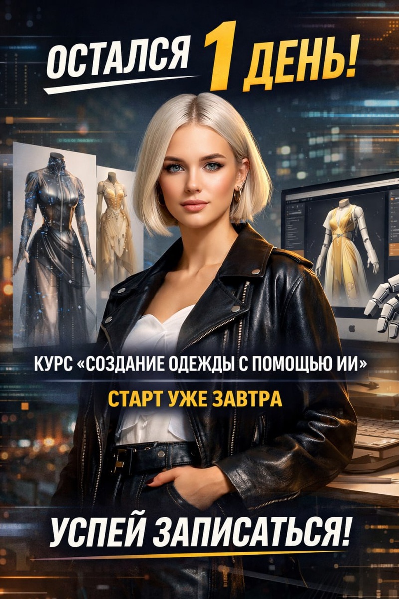 Если ты откладывал, сомневался или думал «потом» — вот это самое потом уже закончилось. Это курс не про «поиграться с нейросетью». Вы научитесь: — превращать идеи в визуалы коллекций, — работать с ИИ как с реальным инструментом дизайнера, — ускорять процесс и расширять креатив, а не заменять себя машиной. ⏰ Старт уже завтра. Дальше — только следующий поток (и неизвестно когда). Если чувствуешь, что тебе туда — время решаться. По вопросам - https://t.me/ScienceFashion_Education 👉 Записаться можно прямо сейчас.