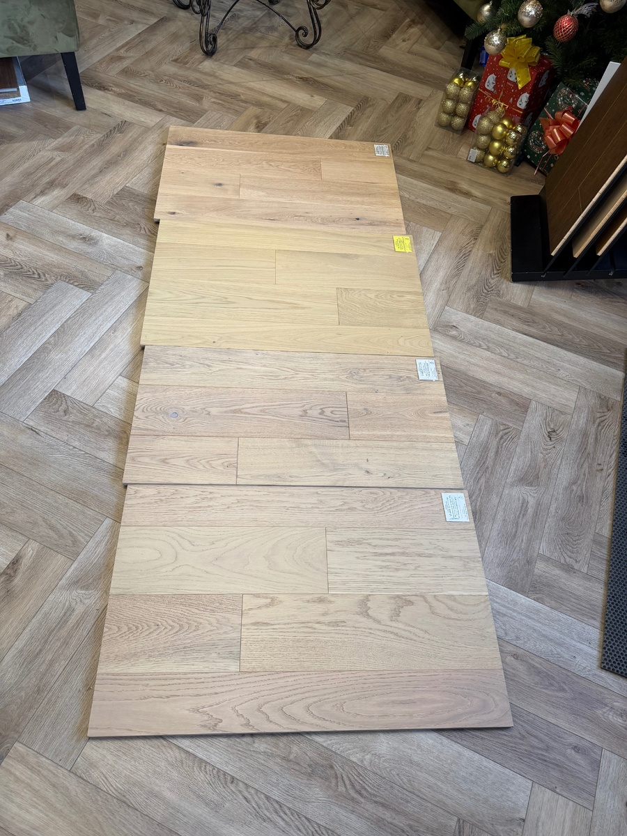 Все-таки есть доступные варианты. На Ozon Павловский паркет елочкой — можно самостоятельно покрыть маслом, цены на качественные модели дуб рустик или ясень от 2300 руб./м² (с учетом акций). У дилеров Alpine Floor (Китай, 2 мм верхний слой) от 3950 руб./м², Kraft Parkett (Россия, фаской 4 стороны) от 4400 руб./м² у дилеров (с моей скидкой вышло дешевле на 15%), на маркетплейсах и в Лемана pro дороже существенно! В перспективе долгого проживания инженерная доска всегда выигрывает: ее достаточно ошкурить и перепокрыть маслом — экологичное сырье, европейские лаки/масла, подходит под теплый пол без обязательной подложки, класс 33/42, долговечность как у массива, проще в уходе, рейтинг 4.3/5 (хвалят текстуру, запах, геометрию, нет скрипа).