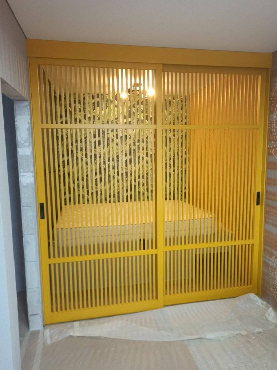? Здесь другая история — перегородка зонирует спальню и сразу становится акцентом. Реечная, без стекла, в деревянном профиле, покрытие — эмаль. Цвет — жёлтый. Смело, ярко и совсем не про «раствориться в интерьере». Такие перегородки тоже бывают — для тех, кто хочет добавить характер, цвет и настроение, а не только функциональность. 🌟Нашей Алине она очень нравится. А вам как — решились бы на такое зонирование ?
