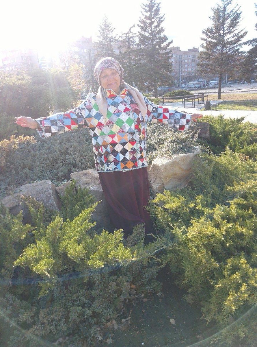 Можно, я тоже покажу своё Есенинское одеяло. Носила практически до морозов. Из квадратов 7*7