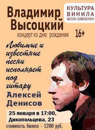 ✔ Живой концерт под гитару ✔ Любимые песни Владимира Высоцкого ✔ Тёплая камерная атмосфера с угощениями ✔ Викторина для знатоков творчества 📅 Когда: #25_января, 17:00 (сбор с 16:30) ⛳ Где: «Культура винила», ул. Дикопольцева, 23 💳 Стоимость: 1200 ₽ Билеты 👉 Афиша Хабаровска. Куда сходить, экскурсии