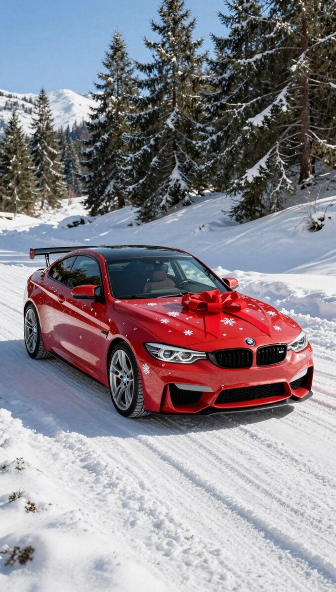 ! 🚗 Разберём, как создать праздничную автомобильную сцену с идеальной детализацией материалов и атмосферного освещения, а затем оживим её в t.me/AAGVideoBot 📝 Оптимизированный промт: A stunning BMW M4 coupe wrapped in festive red gift paper adorned with white snowflakes, tied with a large, glossy red ribbon bow across the hood, parked on a pristine snowy mountain road with deep tire tracks, surrounded by snow-laden evergreen pine trees under a bright clear blue sky, the car features a prominent rear wing, custom silver multi-spoke alloy wheels, and a sleek, sporty design, capturing a joyful, holiday-themed winter scene with crisp sunlight casting sharp shadows, emphasizing the glossy finish of the wrapping paper and the car's aerodynamic curves, evoking a sense of excitement, celebration, and festive cheer 💡 Почему этот промт идеален для Z_image: 🔘 Детализация материалов → "festive red gift paper adorned with white snowflakes", "glossy red ribbon bow", "snow-laden evergreen pine