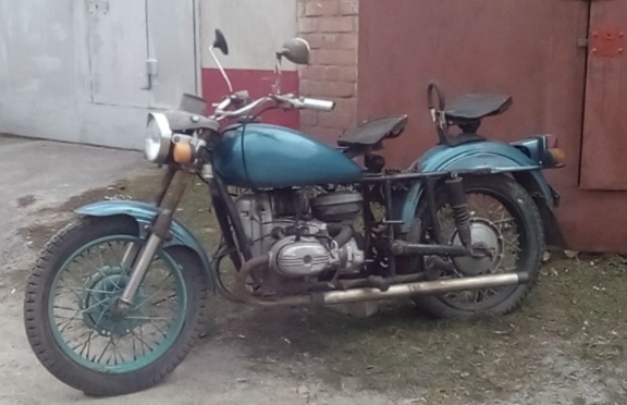 Синий «Урал». Приходит к нам парень и говорит: «Купите «Урал», похмелиться надо».;) Интересно, тяжелые мотоциклы я люблю и давно уже хотел себе приобрести, начались распространение чего и как, он всё честно рассказал, в море заклинило коробку, до этого был полностью исправен, цену попросил символическую, чуть больше чем за «Чезет», ок, поехали смотреть в частный сектор, приехали, в зарослях