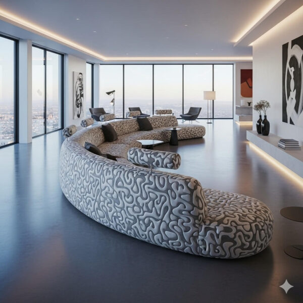 Цена от 800 000 ₽ Диван Cosmo сочетает космический дизайн с плавными округлыми формами и низкой посадкой, создавая ощущение гармонии и уюта. Каркас выполнен из высококлассной сосны, а наполнение из ППУ обеспечивает комфорт при ежедневном использовании. Регулируемые подголовники и мягкая спинка делают отдых максимально удобным. Каждая модель производится на заказ, с возможностью индивидуальной отделки дорогими тканями по вашему вкусу. В каталоге мягкой мебели Cosmo выделяется как стильный и функциональный элемент интерьера, который подчеркивает современный вкус хозяев. Диван Cosmo поражает своим космическим дизайном и плавными, округлыми линиями. Его форма в виде длинной полусферы создаёт ощущение гармонии и визуального комфорта. Низкая посадка и мягкая спинка делают его идеальным для долгого отдыха, а регулируемые подголовники позволяют адаптировать диван под индивидуальные предпочтения. Такой дизайн превращает каждый интерьер в уютное пространство с акцентом на стиль и современность