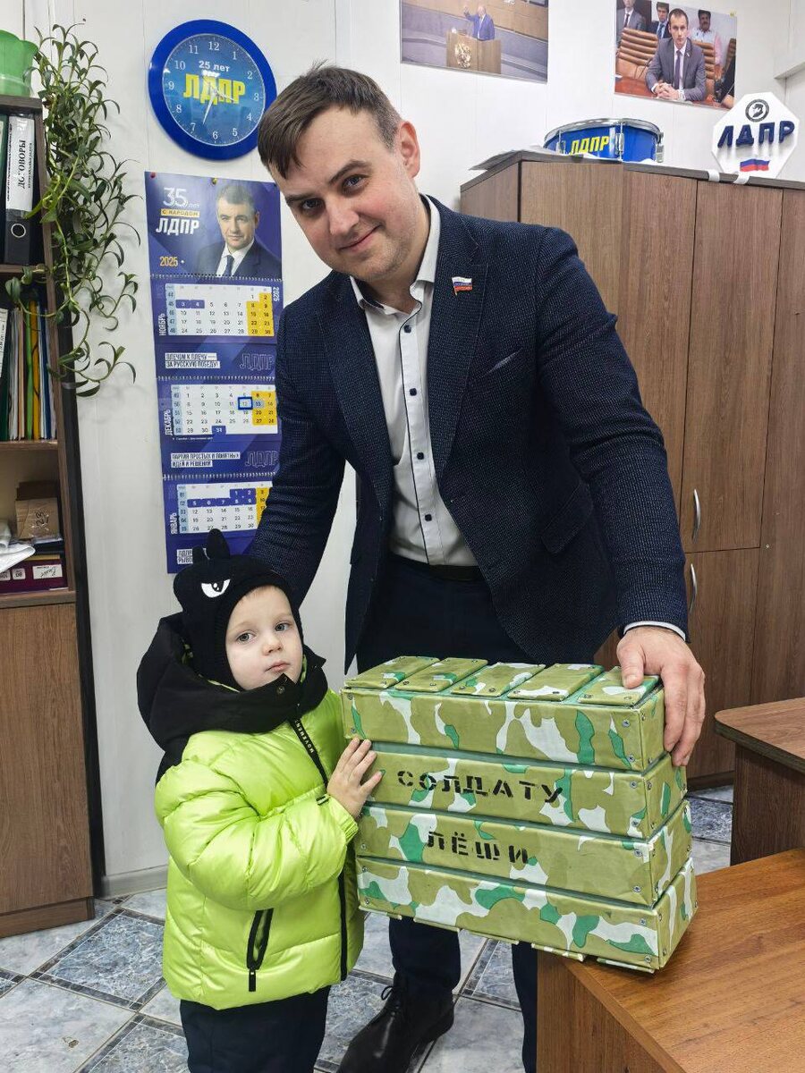 🎁🎅 В Штаб ЛДПР смолянка Анжелика Николаевна Ильина с внуком Артёмом передали уникальную новогоднюю посылку для «солдата Лёши». В самодельной коробке, напоминающей ящик под снаряды, небольшой комплект полезных вещей и открытка с письмом защитнику от мальчика. Как рассказала Анжелика Николаевна, Тёма к Новому году сам решил собрать на накопленные деньги подарок «самому сильному солдату Лёши». Бабушка ему в этом деле только помогала. Важно было успеть передать посылку на фронт, и всё получилось. В канун Нового года волонтеры «За_наших67» в зоне СВО вручили подарок от мальчика бойцу по имени Алексей, а он записал видео с благодарностью. Трогательная история юного патриота — пример для всех нас. Большое спасибо Артёму за подарок воину, бабушке и родителям — за воспитание в духе любви к Родине, уважения и внимания к другим людям.