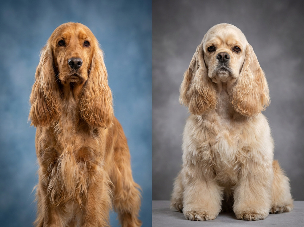 Я занимаюсь разведением американских кокер-спаниелей много лет, и один из самых частых вопросов: «А чем он отличается от английского?» На самом деле, сейчас это две совершенно разные породы, и разница видна невооруженным глазом. Начнем с головы. Это главный маркер. У американца череп куполообразный, а переход от лба к морде (стоп) очень резкий и четкий. Это создает то самое знаменитое «кукольное» выражение лица. Морда у американца короче, квадратная, пропорциональная. У английского собрата череп более плоский, морда вытянутая, лобной переход сглажен. Взгляд английского кокера более строгий и рабочий. Важный момент — уши. У американского кокера они более длинные и, что важно, посажены ниже, примерно на уровне глаз. У английского кобеля уши посажены выше, на верхней части скулы, что придает голове иной облик. Теперь посмотрите на корпус. Американцы компактнее, сложены «квадратом». Это позволяет им быть маленькими, но крепкими. Английские кокеры выглядят более растянутыми, у них более